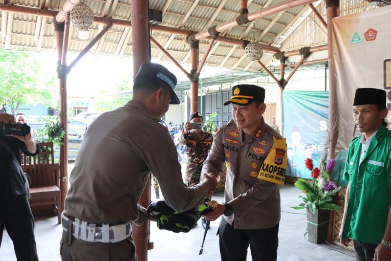 Puncak acara seremonial ditandai dengan Penyerahan Simbolis Rompi Balantas (Banser Lalu Lintas) oleh Kapolres Gunungkidul kepada perwakilan personel Banser. Penyerahan rompi ini bukan sekadar formalitas, melainkan simbol legalitas dan kemitraan operasional Banser dalam membantu kepolisian mengatur arus lalu lintas selama masa mudik.